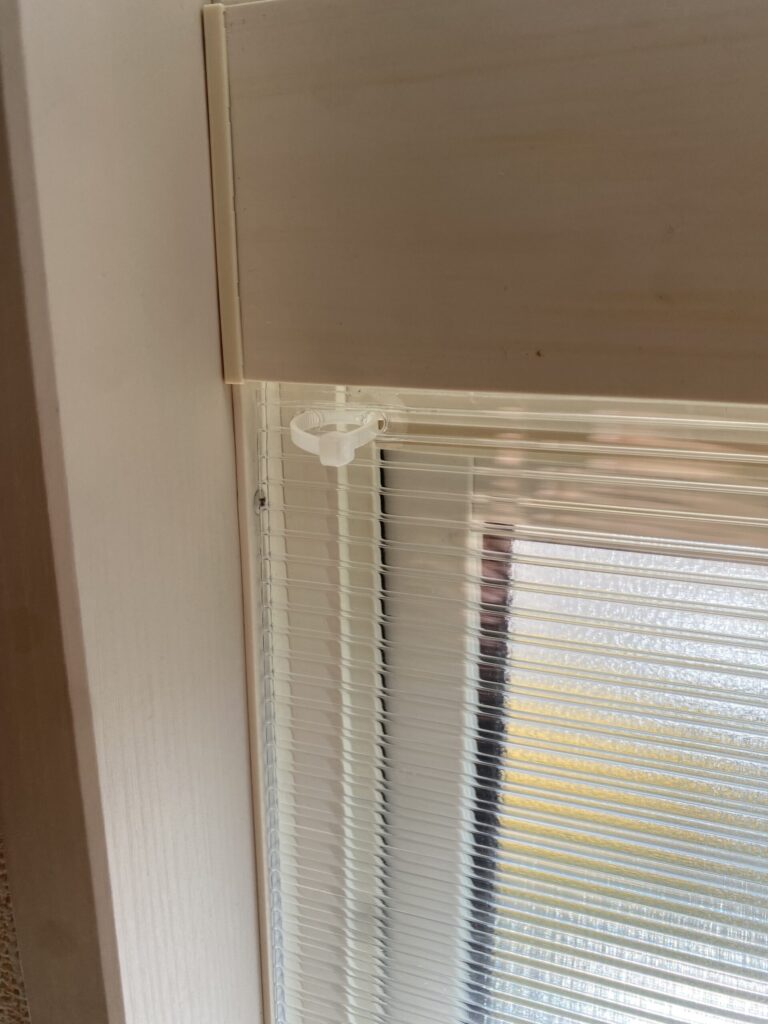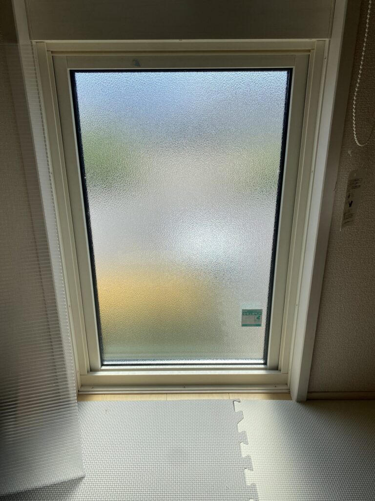 ポリカが余ったので、どこかに使えないか?と思っていたのですが、我が家には2枚の小さい小窓があり、そこから冷気が入ってきて地味に寒かったので、そこも二重窓にしようと考えました。ただ、小窓なのでどのように二重窓にしようかと考えて、パッと思いついたのが「そんなに難しく考えなくてもいいのでは?」ということで、枠のサイズにカットしてはめ込めばいいじゃないとの結論に至ってできたものがこちら↓